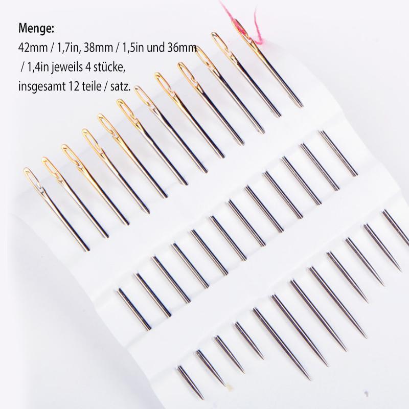• Alle Arten von Stahlnadeln erfüllen unterschiedliche manuelle Anforderungen. Geeignet für die größten Arbeiten zum Sticken, Nähen, Quilten, Stopfen usw.